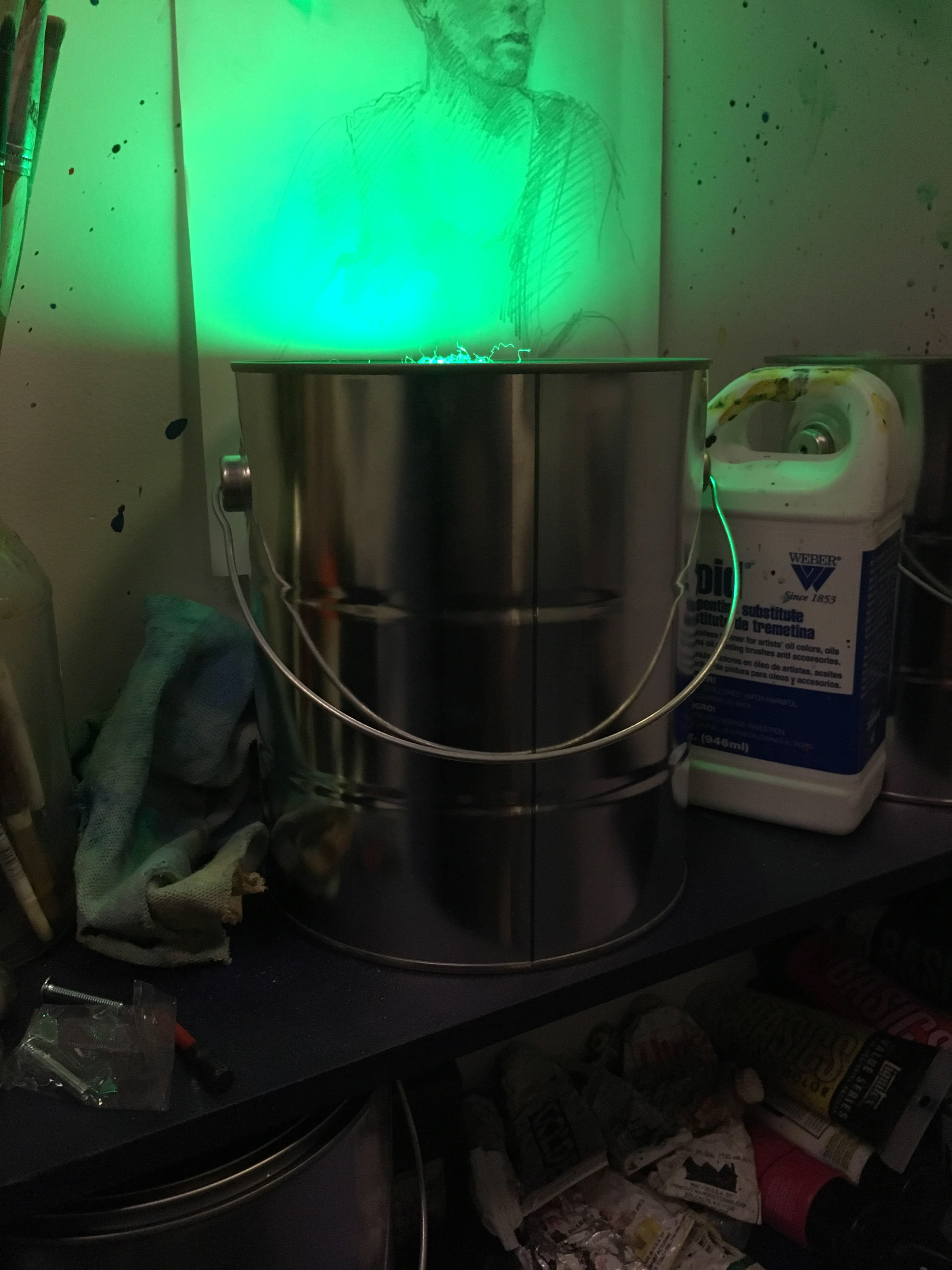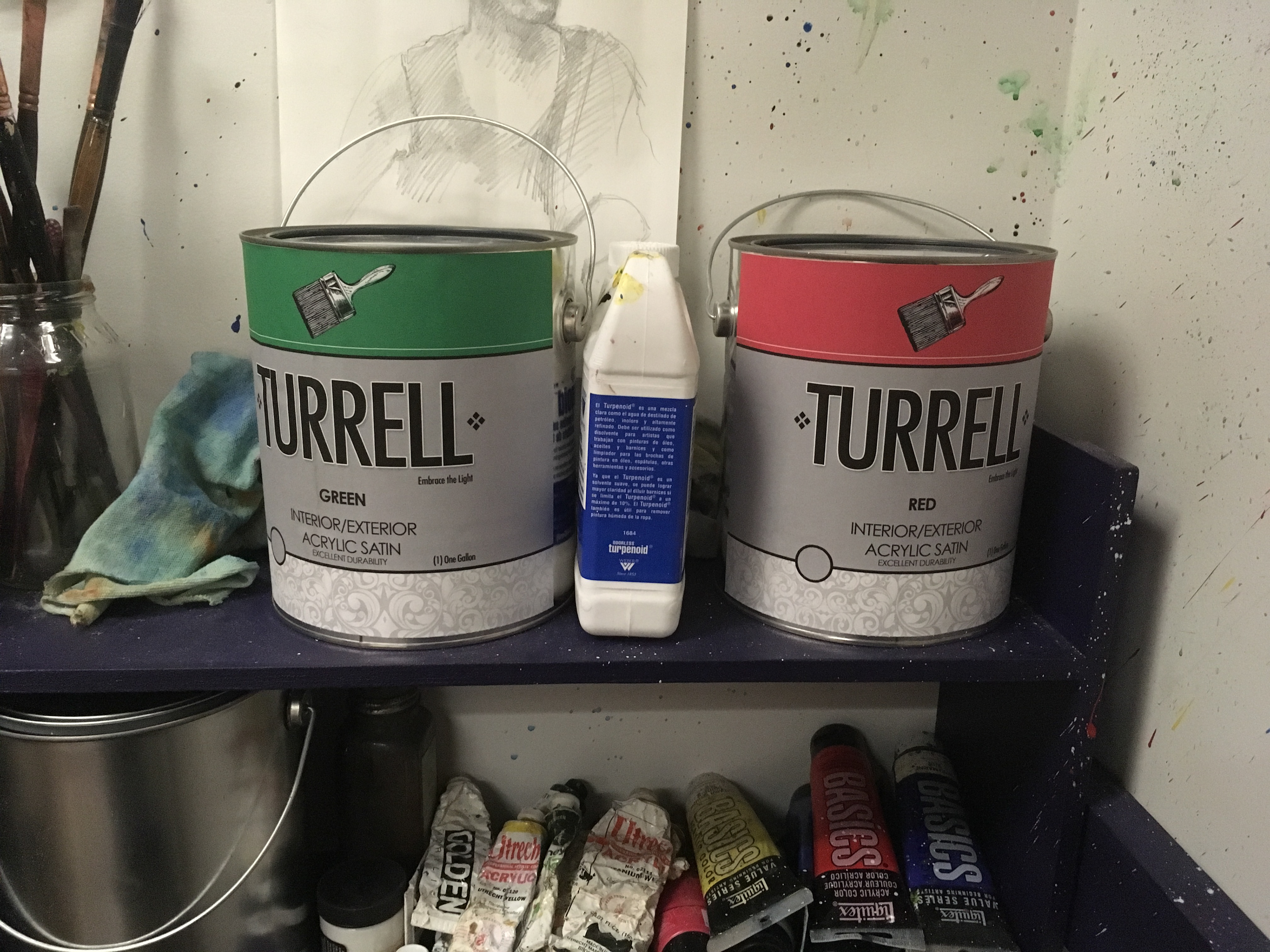 Artist's studio complete with fake brand paints (get the reference?)