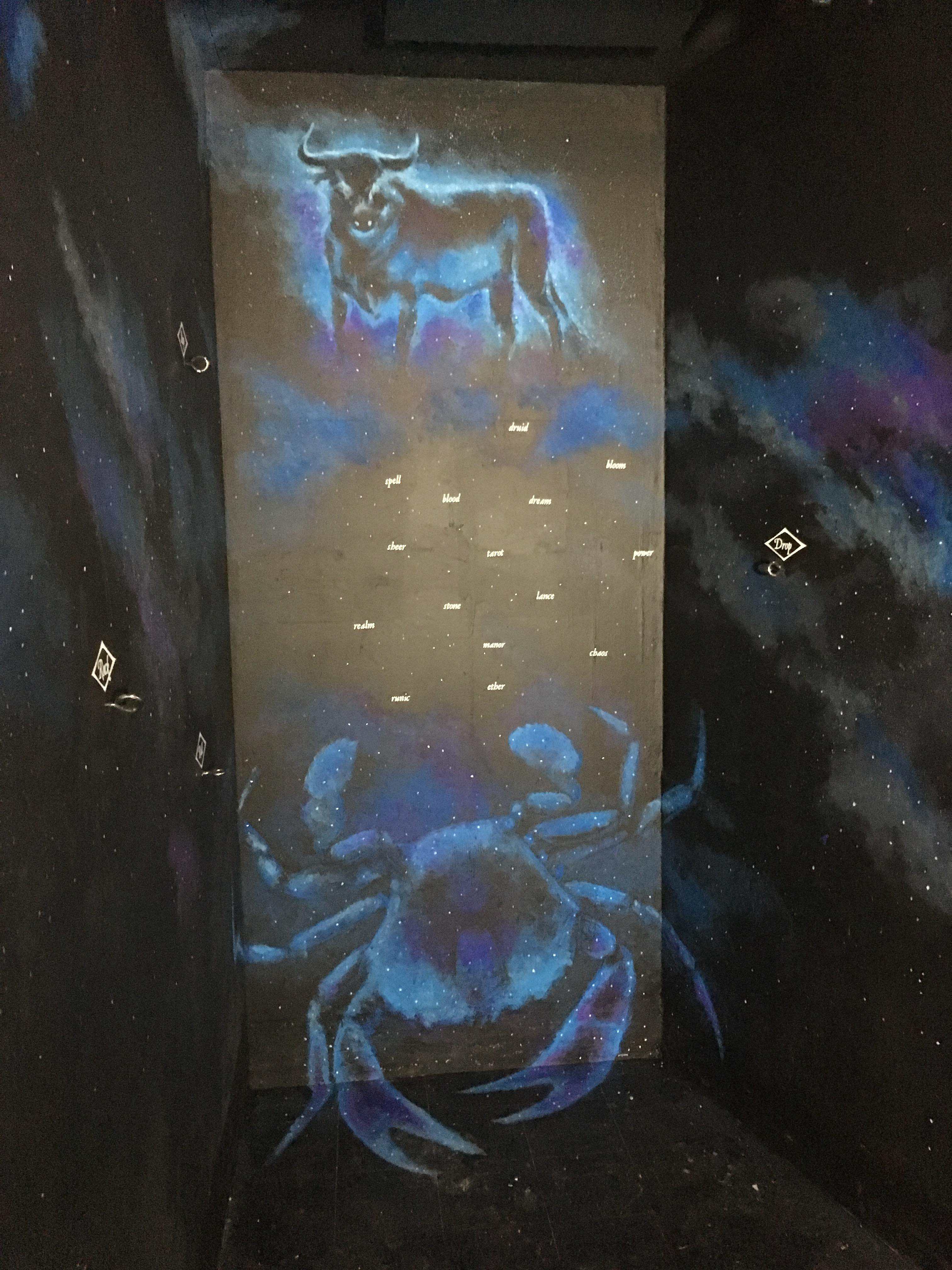 I'm particularly proud of this concept, as the zodiac constellations along the all-black walls and floor cause the space to appear large and immersive.