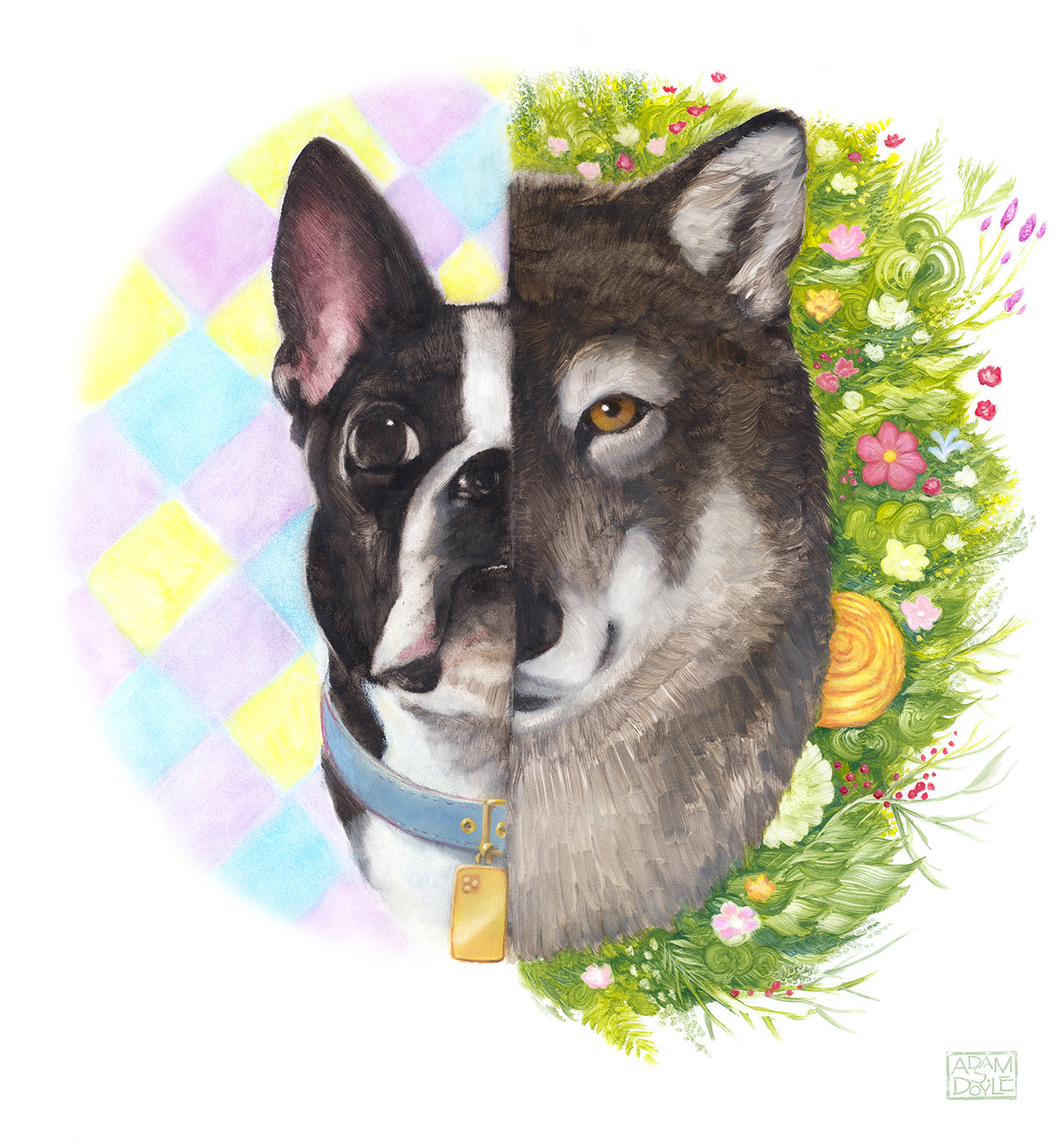 The cute Boston Terrier comes from a long line of selective breeding that originated with the Gray Wolf.