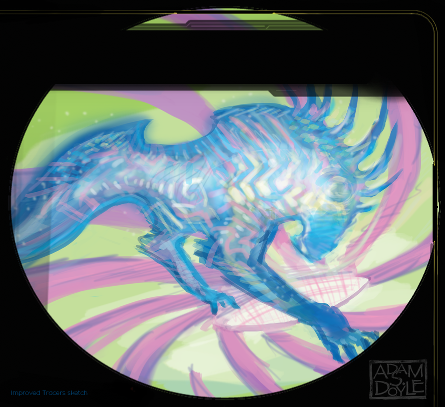 After reviewing a bunch of my sketches, the art director opted to have me remove the words and focus more on the creature beyond the barrier.